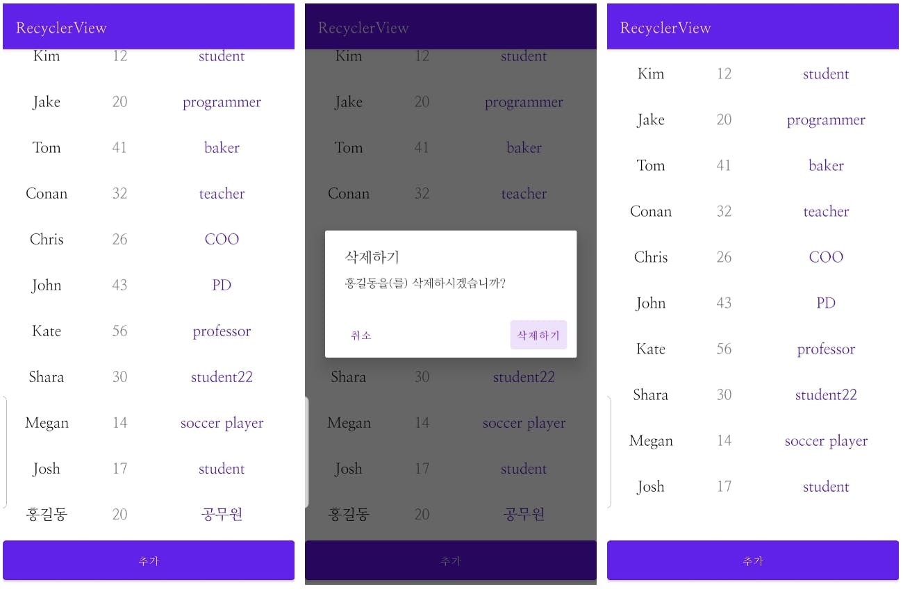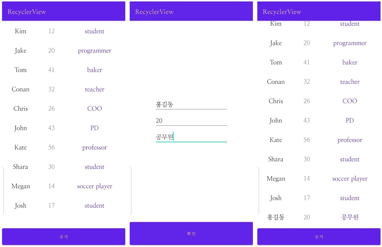 리사이클러뷰 아이템을 추가, 수정, 삭제할 수 있다.