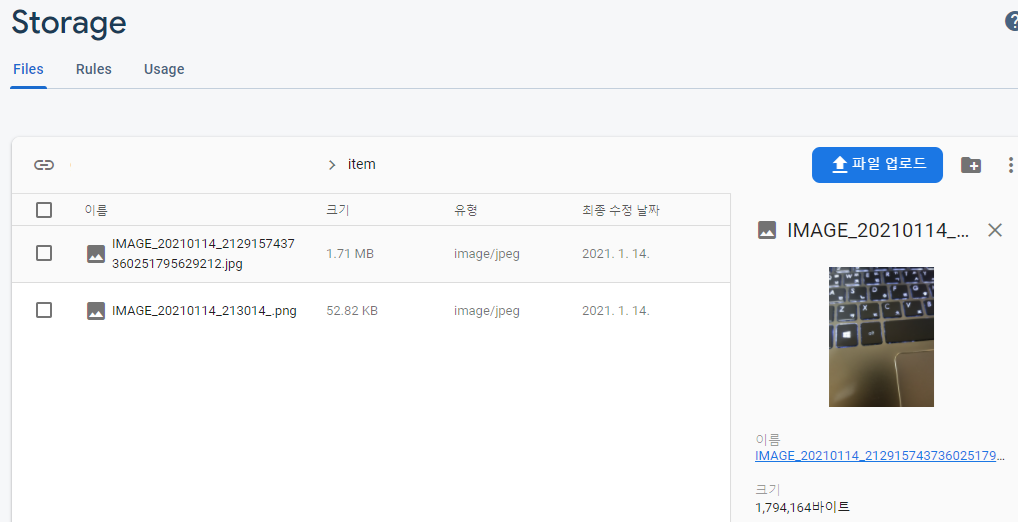 reference = storage.getReference().child("item").child(imageFileName); // 이미지 파일 경로 지정 (/item/imageFileName)