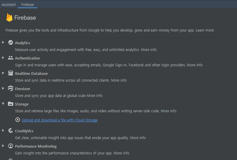파이어베이스에 사진을 업로드하기 위해선 안드로이드 프로젝트와 파이어베이스가 연결되어야 합니다.