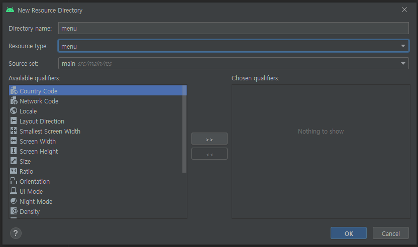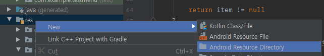 res > new > Android Resource Directory > menu 디렉토리 생성