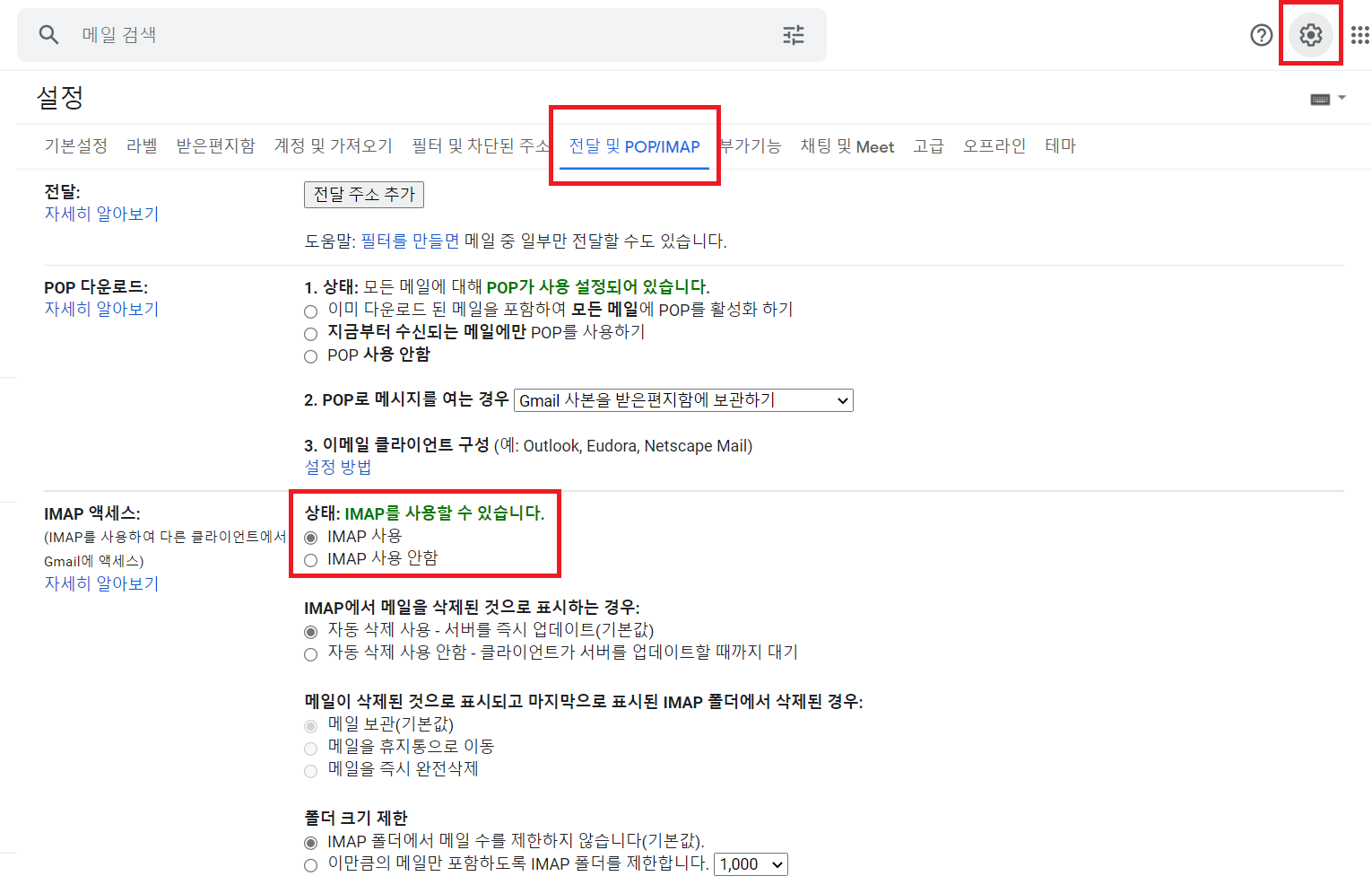 2. IMAP 사용 설정