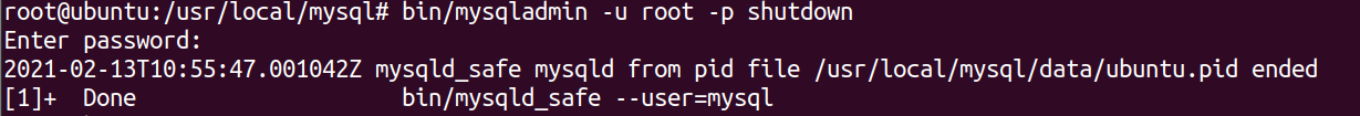 # bin/mysqladmin -u root -p shutdown