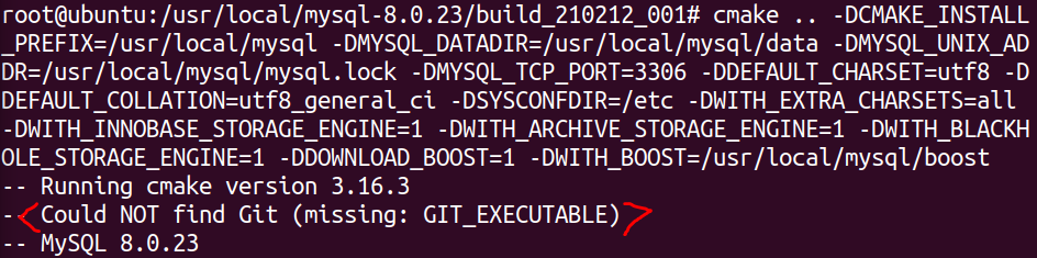 # cmake .. -DCMAKE_INSTALL_PREFIX=/usr/local/mysql \