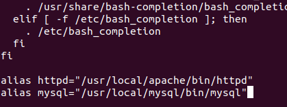.bashrc란 파일창이 새로 열리고 알파벳 j(↓)와 l(→)키로 파일 맨 끝에 간 뒤 a를 눌러 아래처럼 alias를 추가한다.