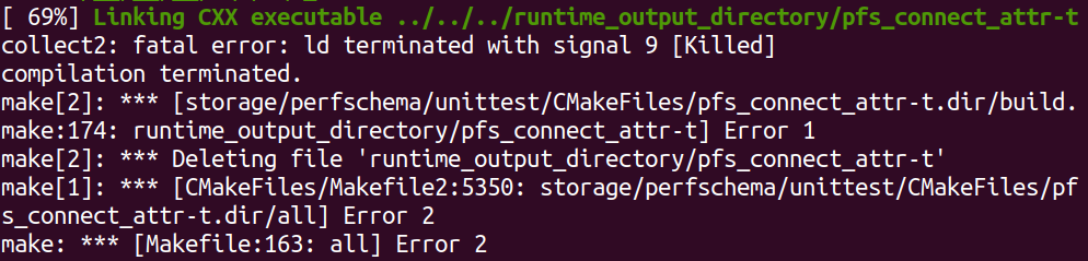 collect2: fatal error: Id terminated with signal 9 [Killed] compilation terminated.