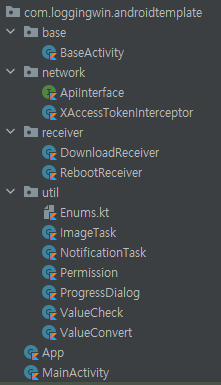 - view : activity, fragment 등 뷰 관련 클래스 넣는 패키지 (view 패키지 안에 activity, fragment 패키지 추가 추천)